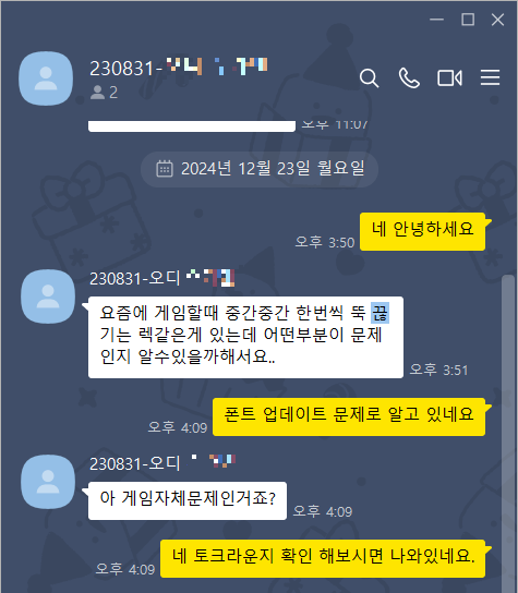 2024년 11~12월 폰트 업데이트 후 끊기는 문제까지 겹쳐서 발생하였고