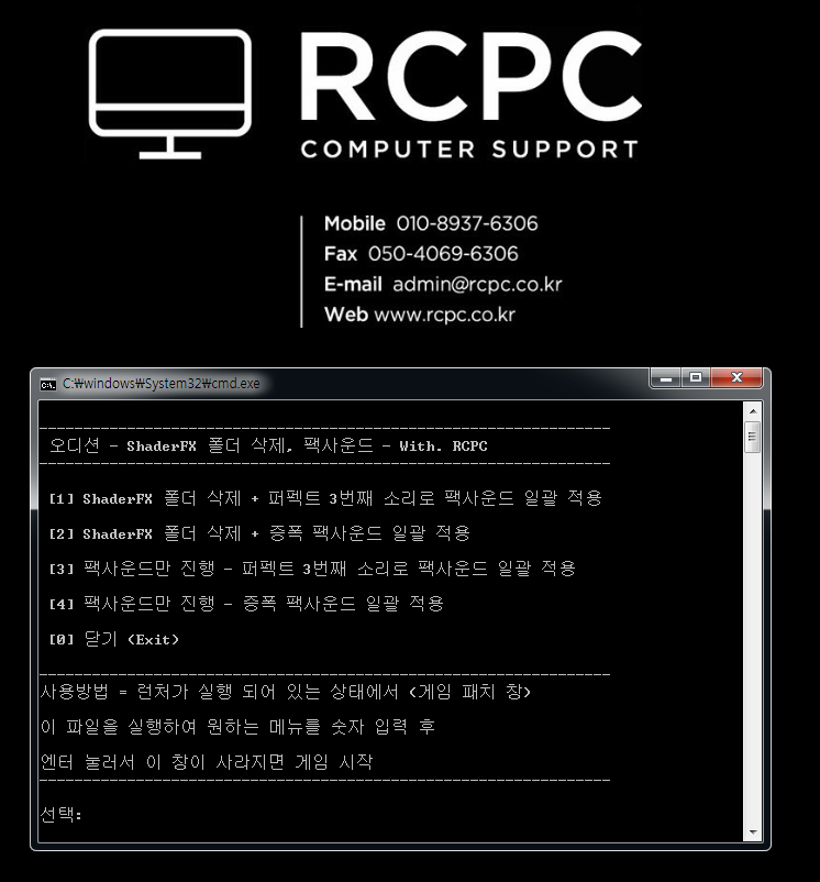 - ShaderFX 폴더 삭제 (고사양 모드) 및 팩사운드를 포맷할 때