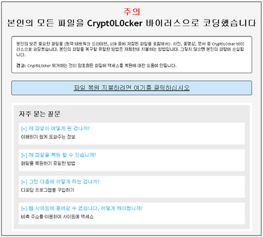 파일을 복원하기 위해 해커가 요구하는 비트 코인이나 가상 계좌로 돈을 보내면