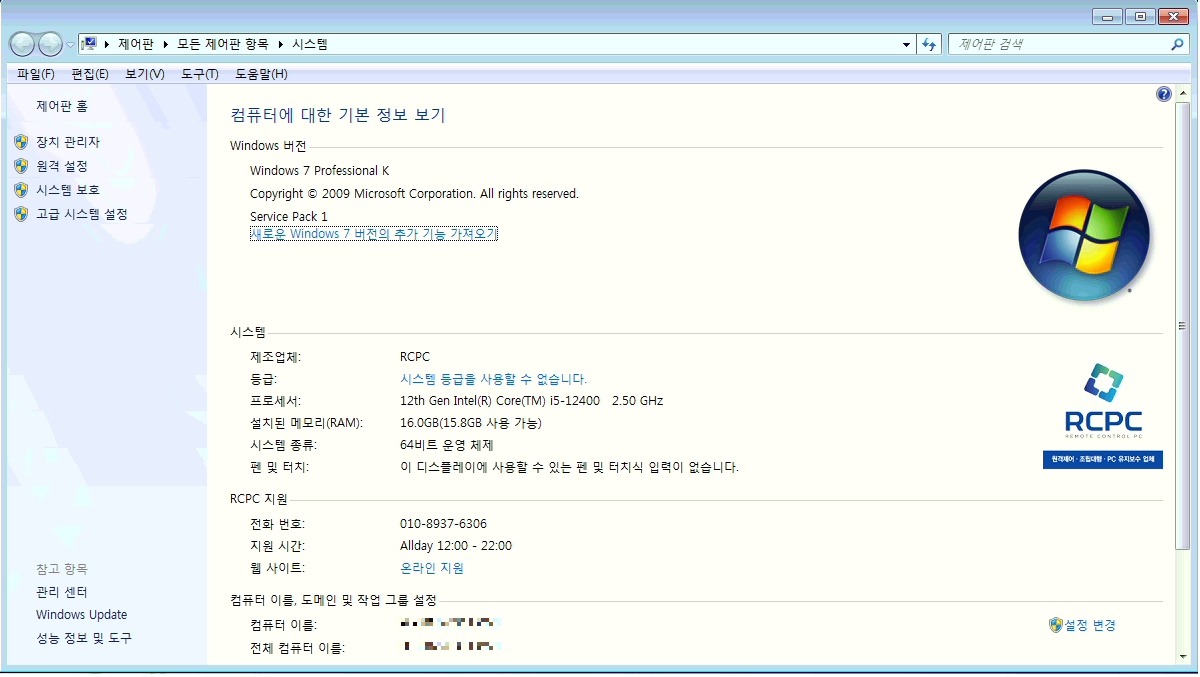 2022년 6월 13일 "RCPC 온라인 원격 포맷 - 윈도우7" 진행 건 부터